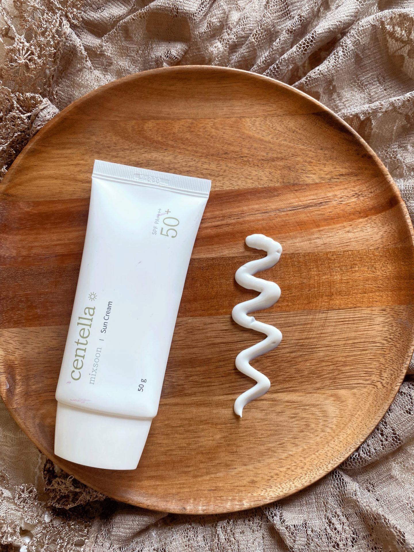 The Mixsoon Centella Sun Cream is an SPF 50+ PA++++ chemical sun cream with centella to hydrate and soothe. It is a lightweight sun cream that sinks in really easily with no whitecast. I have oily skin, so finding a good SPF can be tricky, but this was perfect – hydrating with a slightly dewy finish, but not shiny or greasy.